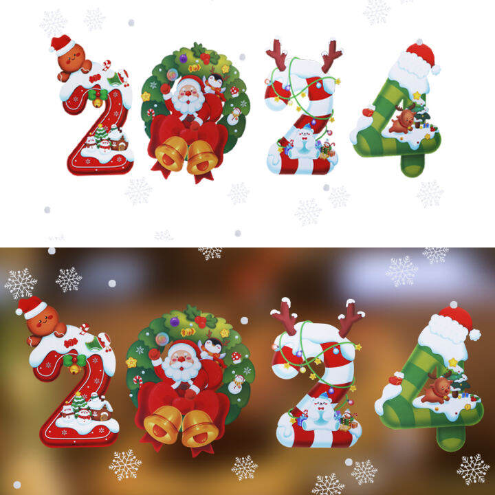 Hot 2024 Christmas Stickers Glass Door Xmas Sticker 2024 Noel
